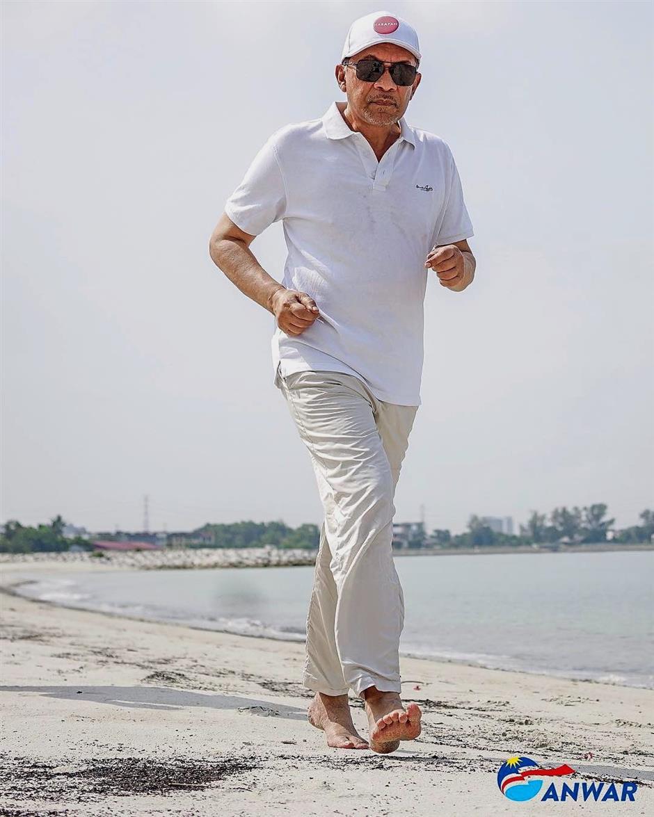 Anwar Jogs At Beach To Boost Stamina The Star